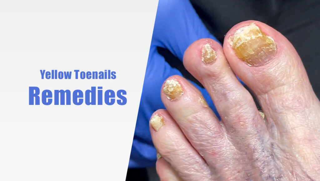 - Yellow nails (most often the big toenail, but it may affect other toenails)